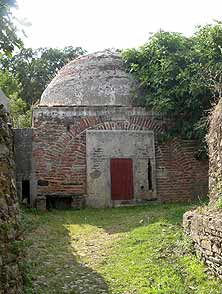 Fuente de planta cuadrada cubierta con cúpula semiesférica.